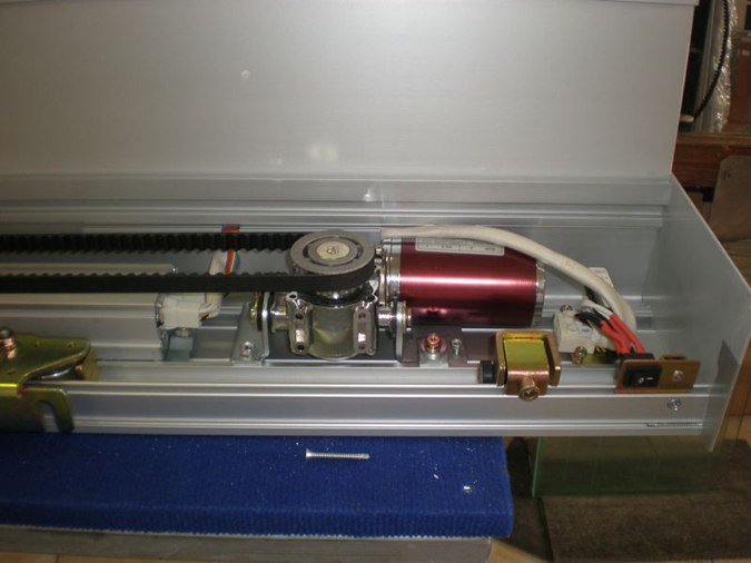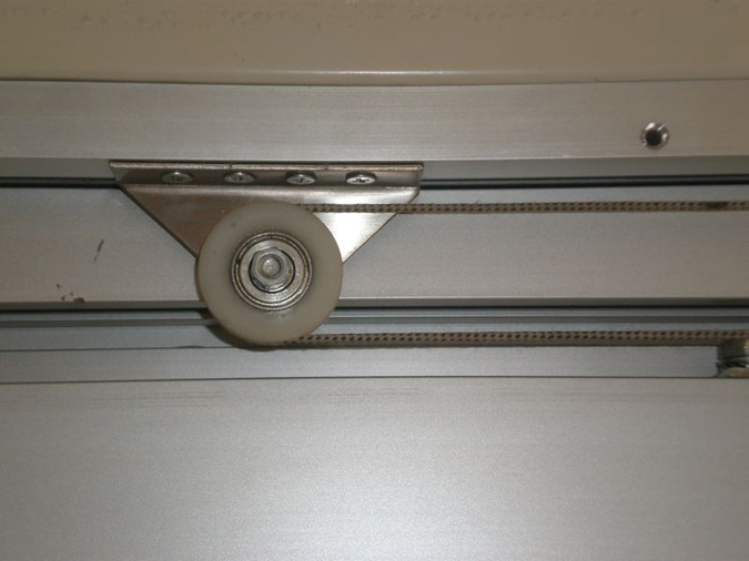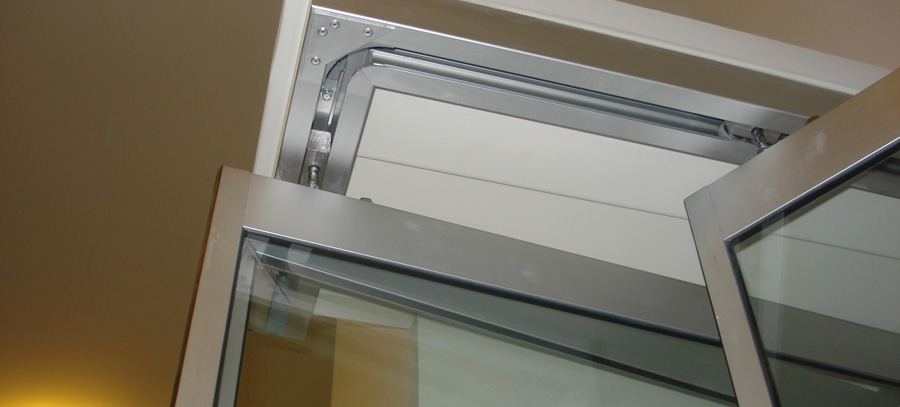 Τα φύλλα που κρέμονται κάτω απο τον μηχανισμό, δυο σταθερά και δυο συρόμενα είναι απο ειδικά προφίλ αλουμινίου δικής μας κατασκευής και απεριόριστης εγγύησης , στα οποία έχουμε κατοχυρώσει το δίπλωμα ευρεσιτεχνίας απο τον Οργανισμό Βιομηχανικής Ιδιοκτησίας ( O.B.I. ) Διαθέτουμε επίσης και ανοιγόμενο μηχανισμό αυτόματης θύρας.
